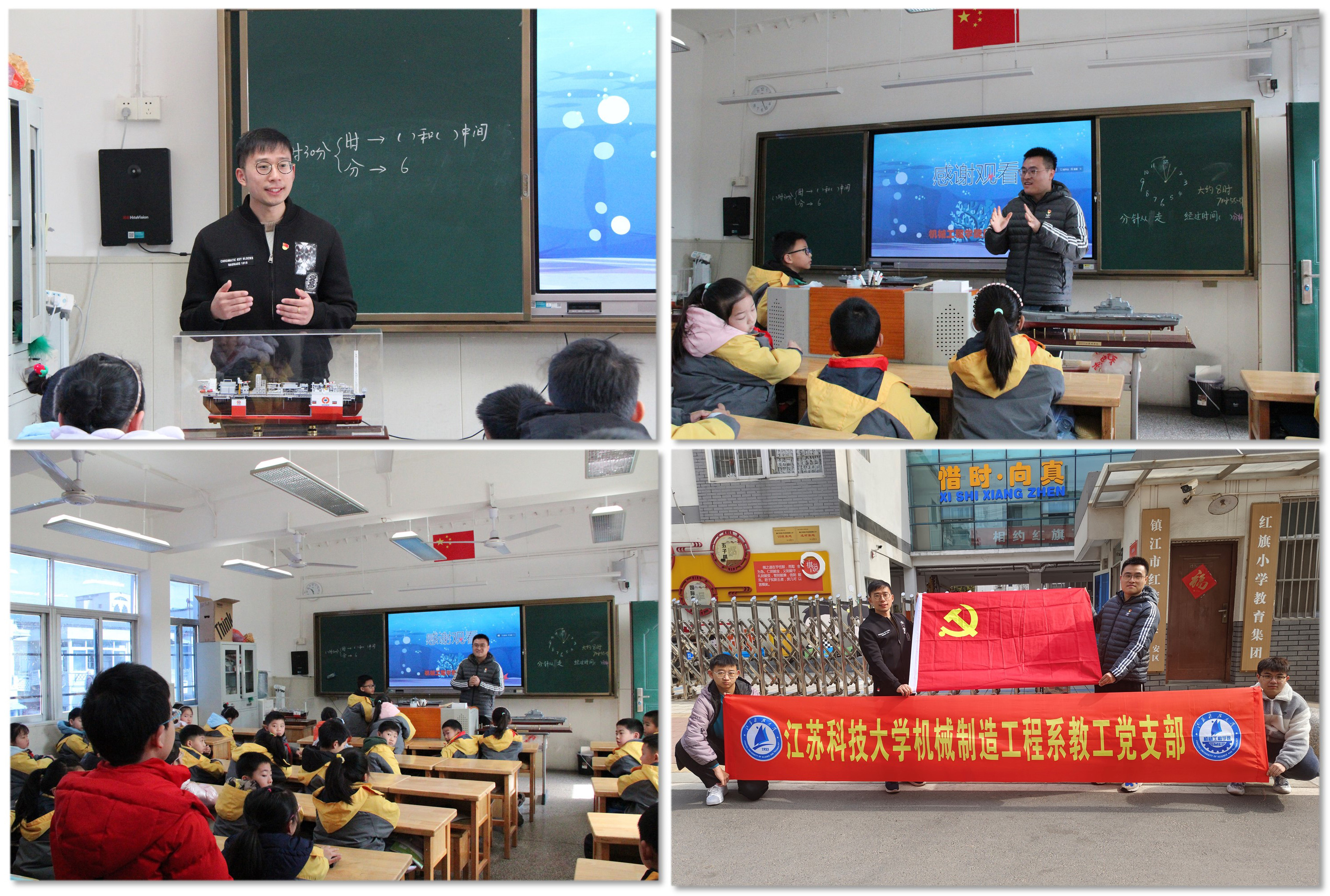 3月3日上午,机械制造工程系教工党支部党员孟祥祎、裴永胜来到镇江市优质教育代表单位红旗小学进行了一场义务宣讲活动。此次活动在学院党委领导和支部的组织下,以学习和践行雷锋同志先进事迹为出发点,开展面向中小学生的“征航四海,船进校园”主题科普活动,积极推动省级样板党支部的建设。课堂上,两位博士充分结合自身所学,围绕国产黄色视频 在我国几十年波澜壮阔的造船岁月征程,向孩子们讲述了我国船海事业的艰辛与不屈,鼓励大家从小励志为中国梦而努力学习,得到了孩子们积极的响应。