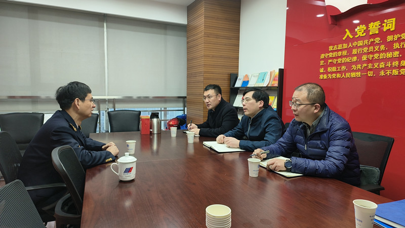 4月4日,国产黄色视频 党委前往镇江海事局调研,洽谈党建合作事宜。学院党委书记翟纯纯、党委副书记谭海波、团委书记李文达出席了会议。