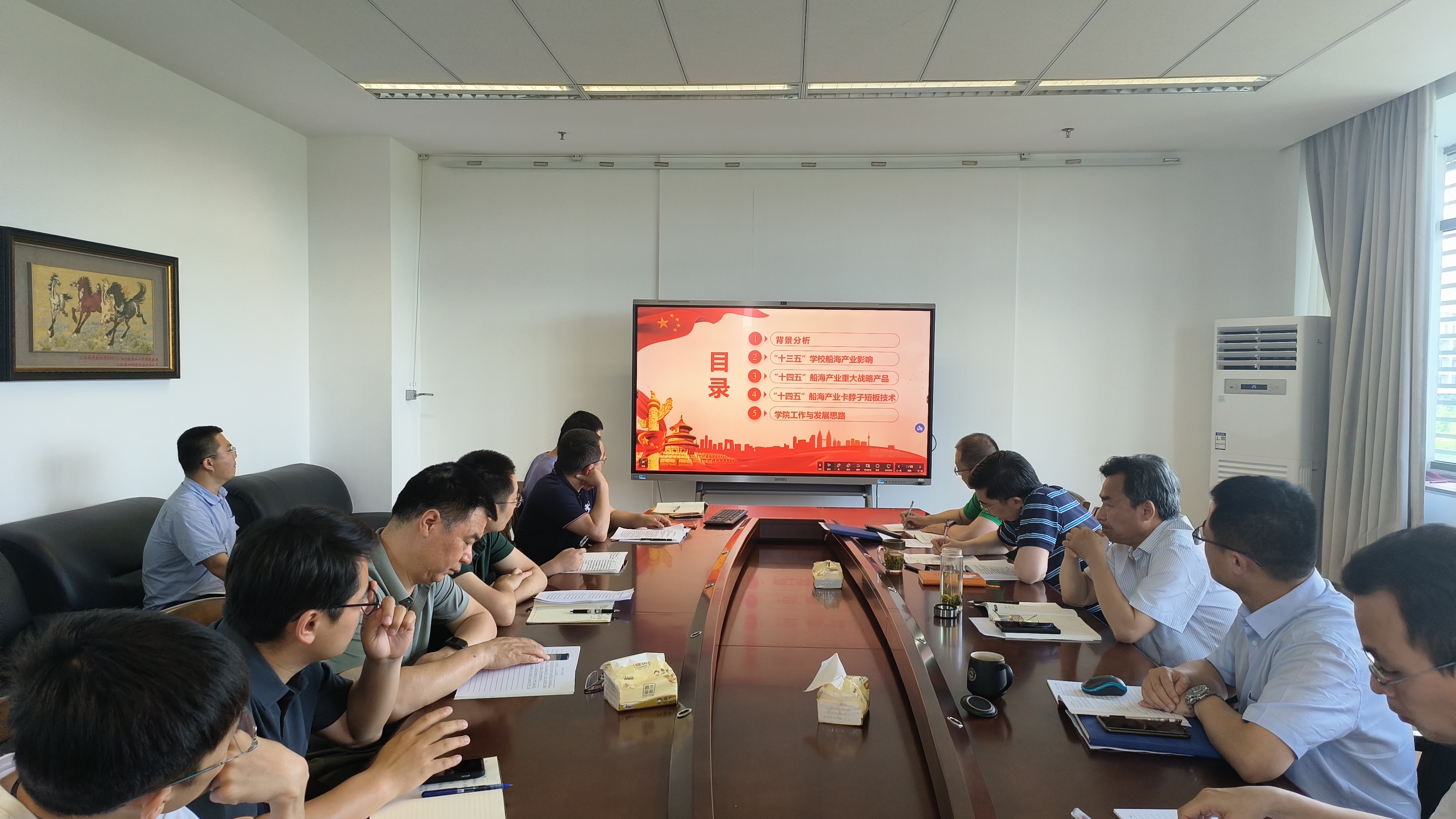 副院长(主持工作)张建、副院长钟伟分别做重点发言。张建围绕“创新驱动发展、推动产学研合作”进行了重点发言,在充分分析江苏省船舶与海洋工程装备产业的行业背景、“十三五”学校船海产业影响和“十四五”船海产业重大战略产品的技术发展趋势的基础上,对学院工作与发展的思路做了深刻探讨。钟伟围绕如何进一步提高创新能力、进一步深化产教融合和进一步优化创新环境做了发言。