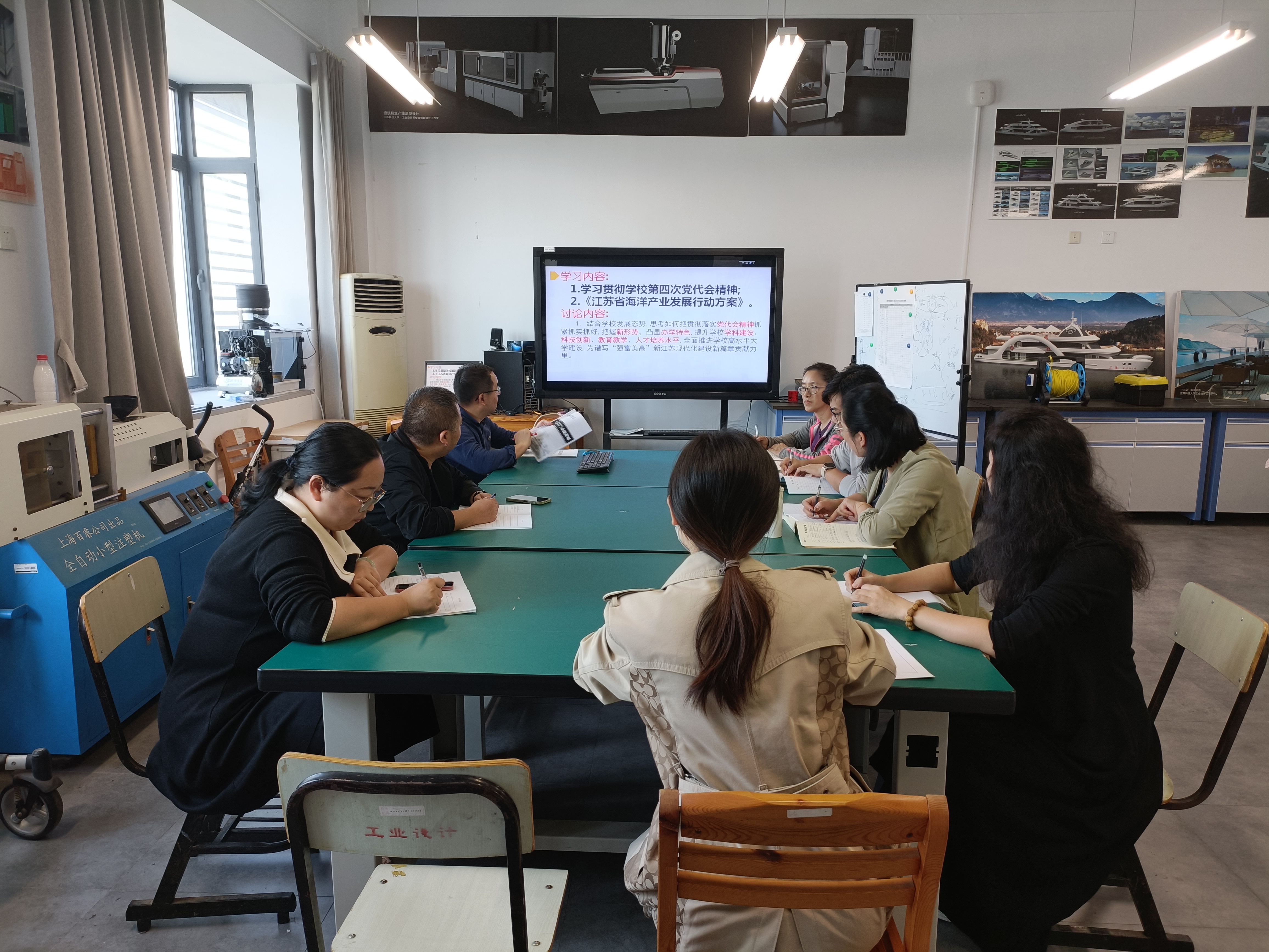 各系部教职工深入学习贯彻学校第四次党代会精神。在完成规定的学习任务的同时,结合学院学科发展以及思考题要求,认真学习了《江苏省海洋产业发展行动方案》,并针对学院学科建设以及教育教学、人才培养展开讨论。