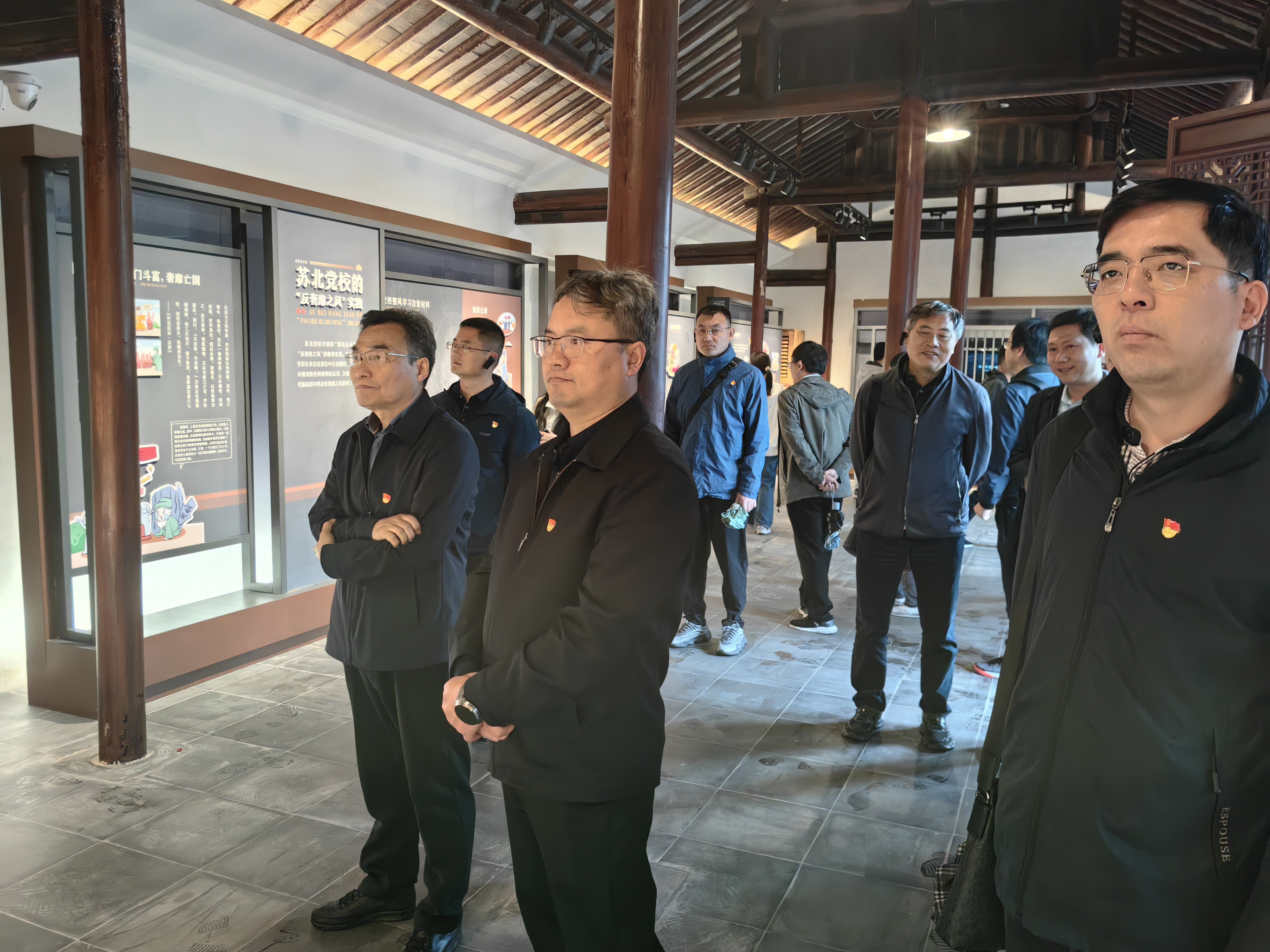 在苏北党校旧址内,党员们在讲解员的引导和讲解下,观看专题短片《华东地区红色摇篮——苏北党校》,参观苏北党校各展馆,详细了解苏北党校的办学历史,并与陈堡镇、苏陈镇党建共建单位领导进行座谈,就党纪学习教育、党建与业务工作融合发展等深入研讨,就拓展共建范围、深化业务融合达成一致。参观结束后,党委书记翟纯纯带领全体党员在宣誓广场,面向党旗郑重宣誓,许下庄严承诺,进一步强化初心使命,坚定理想信念。
