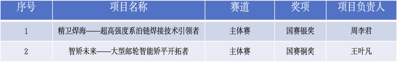 在学校党委的领导下,机械学院党政领导班子高度重视该项赛事,积极组织动员全院教师积极谋划项目,从赛事伊始,围绕项目培育提升、材料完善细化、后勤服务保障,为参赛师生提供全方位支持和指导。由机械学院苏世杰老师指导的《精卫焊海——超高强度系泊链焊接技术引领者》项目在主体赛中获国赛银奖;由机械学院许静老师指导的《智矫未来——大型邮轮智能矫平开拓者》项目在主体赛中获国赛铜奖。