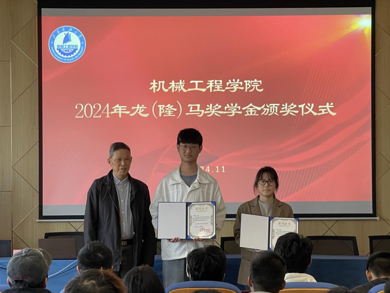 谭海波副书记首先对出席本次会议的师生表示热烈欢迎,并简要介绍了龙(隆)马奖学金的设立背景及意义。他指出,龙(隆)马奖学金旨在表彰在专业学习等方面表现突出的优秀学生,激励广大学子积极进取,追求卓越。任家隆教授逐一为获奖学生颁发荣誉证书,并与他们亲切握手合影。