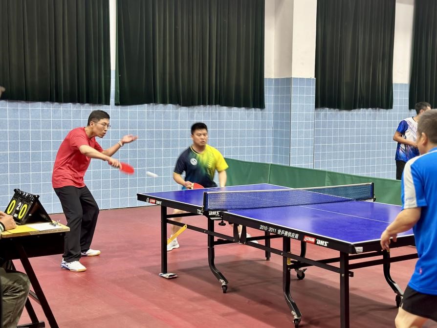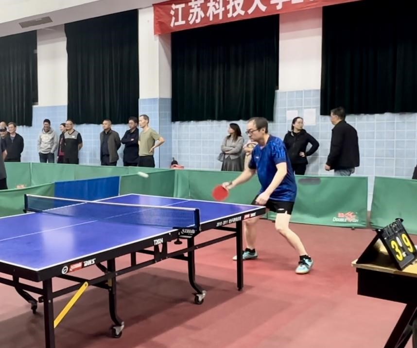 男双比赛中,我们院青年教师组合不敌对手,大比分来到2:1,比赛重拾悬念。