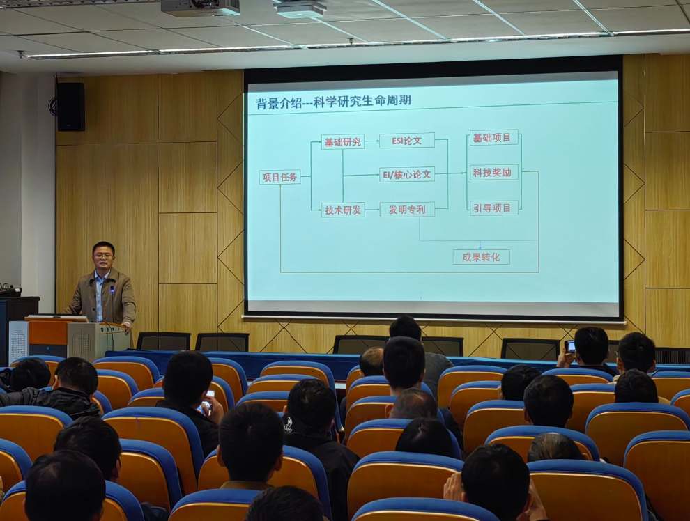 讲座中,张建以科学研究生命周期为例,阐述了科研成果奖申报类型及申报渠道,详细讲解了各类科研成果奖的主要工作流程、核心要素,强调技术的先进性、社会效益及发展前景;同时分享报奖材料撰写的主要步骤、注意事项,强调“成果群”意识,注重成果链的积累,关注相关指南,发现规律、利用规律,提前规划布局。张建还分享了省部级科技奖、专利奖和社会力量奖励的申报案例,分析了各奖项之间的关联与不同,并介绍了提高申报成功率的策略。