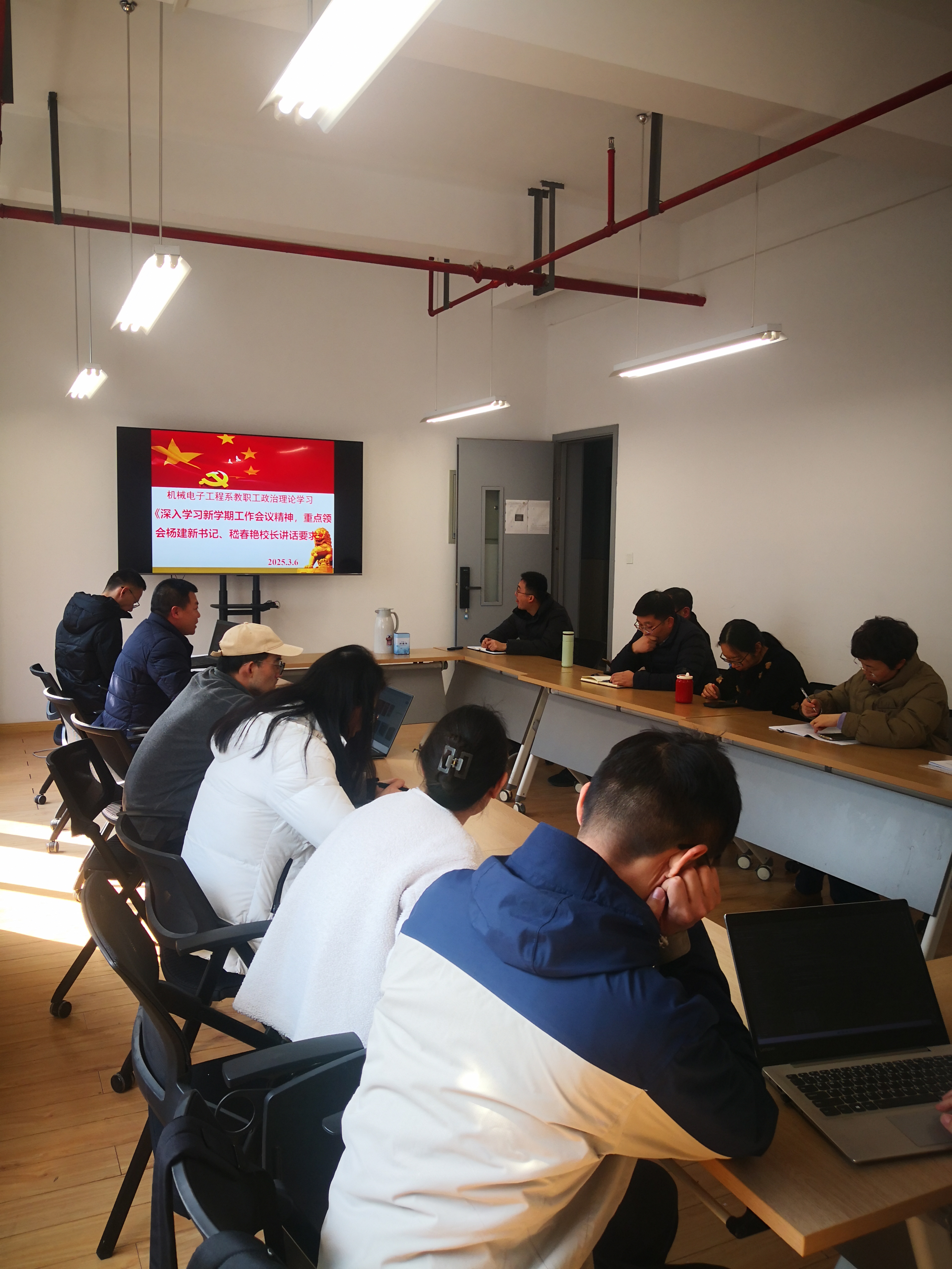 各系部教职工深入学习2025年全国教育工作会议精神、《教育强国建设规划纲要(2024-2035年)》和新学期工作会议精神,紧密结合岗位职责和学校发展实际,思考如何围绕立德树人根本任务,切实增强学生自主能力培养,建设素质精良的教师队伍,推动优势学科与重点行业和头部企业强强联合等相关问题;结合学校发展态势,立足实际,思考如何把握历史机遇,凸显办学特色,提升学科建设、人才培养、科技创新水平,推进学校高水平大学建设,在新征程上开创学校高质量发展新局面。