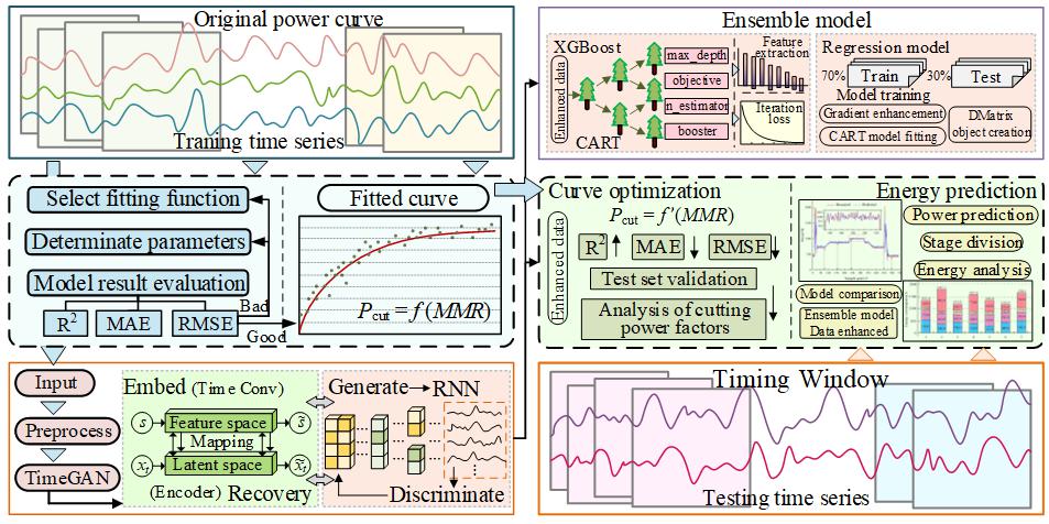 研究团队针对工业场景中小样本学习问题,提出了一种数据增强的机床能耗集成预测方法,并通过时间序列过程生成对抗网络提取加工全过程特征,利用增强样本训练集成模型并对机床加工全过程做回归预测,进一步形成一种基于集成模型和长短期记忆神经网络的机床能量预测模型,解决了数控机床能耗动态特性表征不明确的问题。并以数控铣削过程为例,证明了所提出模型对机床运行状态识别的准确率可以提高到96.8%,从而在未来能够为制造企业建立精准的能耗预测系统,助力“双碳”目标达成。