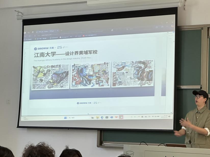 无锡卓尔谟工业设计中心负责人刘仁博和向阳老师先后向学生分享了精彩的内容。向阳老师首先向大家介绍了主流AI应用,并展示了AI参与工业设计的实际案例,分析了当下多款AI应用的特点以及在表现产品设计效果方面的优劣势,详细讲解了Deepseek, Midjuorney, stable Diffusion 从设计前期调研到设计方案推演,直至最终效果展示以及CMF设计的全流程。讲座第二阶段,刘仁博老师从社会发展,企业对人才能力需求,工业设计专业学生职业规划以及考研升学等方面进行了内容分享,该部分内容引起大三学生的高度关注。刘仁博老师重点强调了企业对AI运用能力的要求,并在学生的热情要求下对江浙沪热门考研高校的情况进行了深入剖析,为学生考研升学指明了方向。