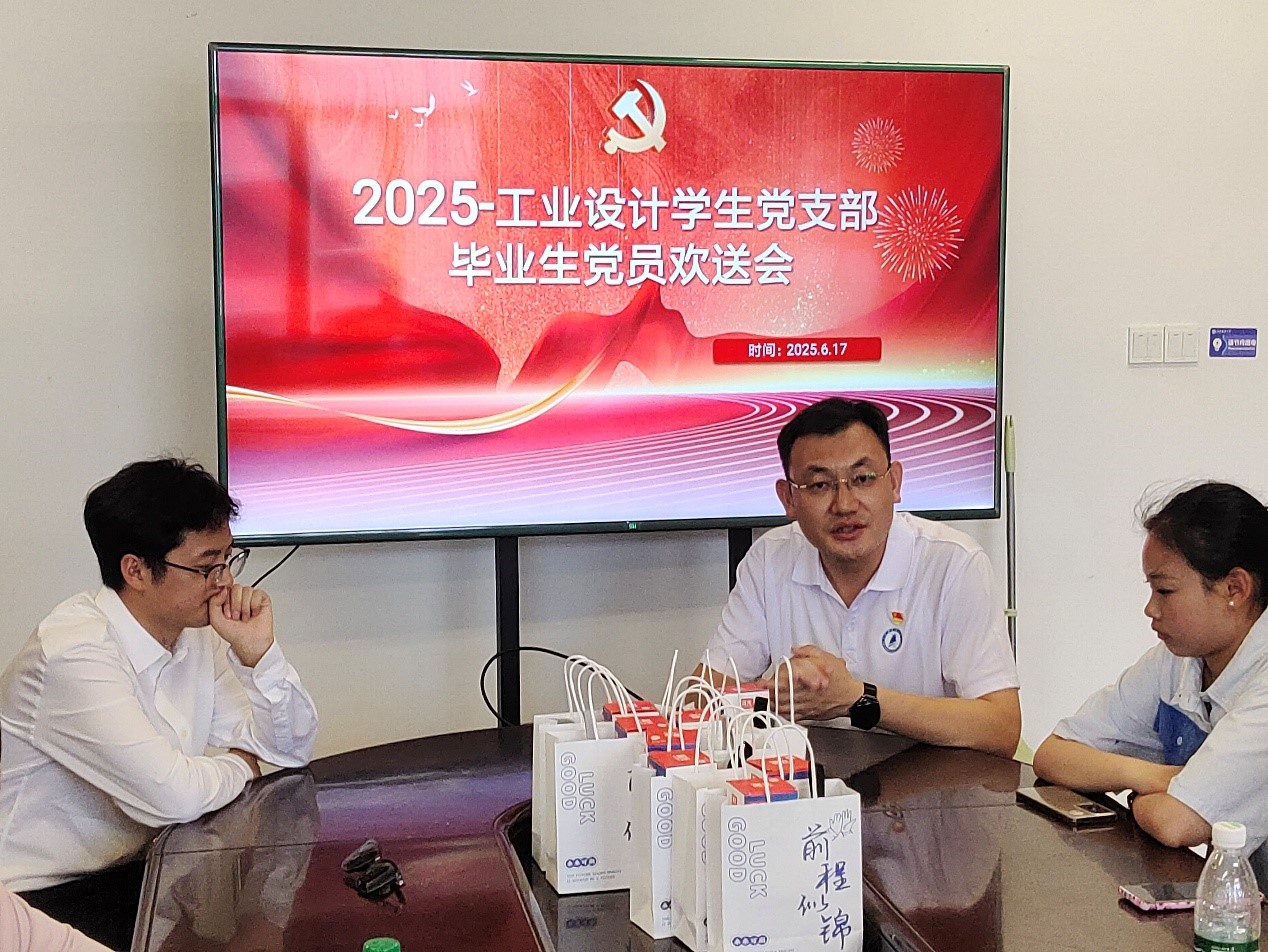 工业设计学生党支部书记李文达老师在会上发表了热情洋溢的讲话。他首先对毕业生党员们表示了衷心祝贺,充分肯定了他们在大学期间为学院和党组织所做出的积极贡献,毕业生党员们是学院的骄傲,他们在学习、科研、社会实践等多个领域都展现出了党员的先锋模范作用。