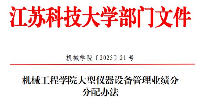 学院制定并发布《国产黄色视频 大型仪器设备管理业绩分分配办法》(机械学院〔2025〕21号),明确了大型仪器设备管理的工作内容、业绩分来源与分配原则。